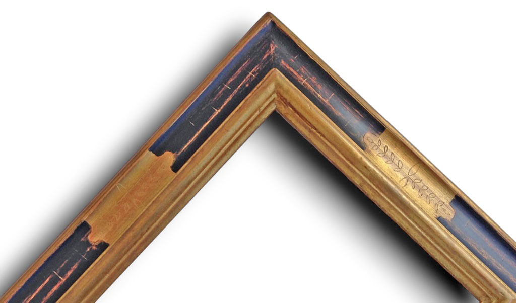 Héba vieux bleu brossé boudin or traces de feuilles